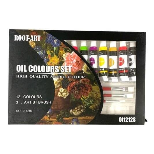 A&T Oil Color Set 12 Colors with Brushes and Pallete || الوان زيت اي اند تي ١٢ لون مع فرش و باليت